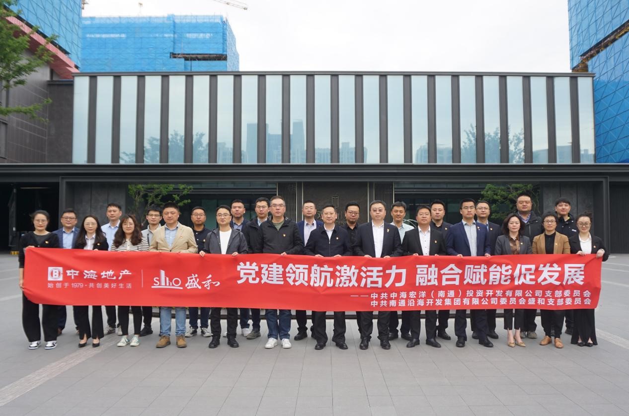 觀山樾項目是盛和房產和中海地產在南通地區首次合作打造的高端改善項目。為全面貫徹黨的二十大精神,弘揚“四敢精神”,充分發揮黨建在合作項目的引領作用,突出中海與盛和“央企 地方國企”的紅色基因,5月10日,沿海集團盛和黨支部、中海鹽通黨支部在觀山樾項目舉行了黨建共建簽約暨項目黨建品牌發布儀式。